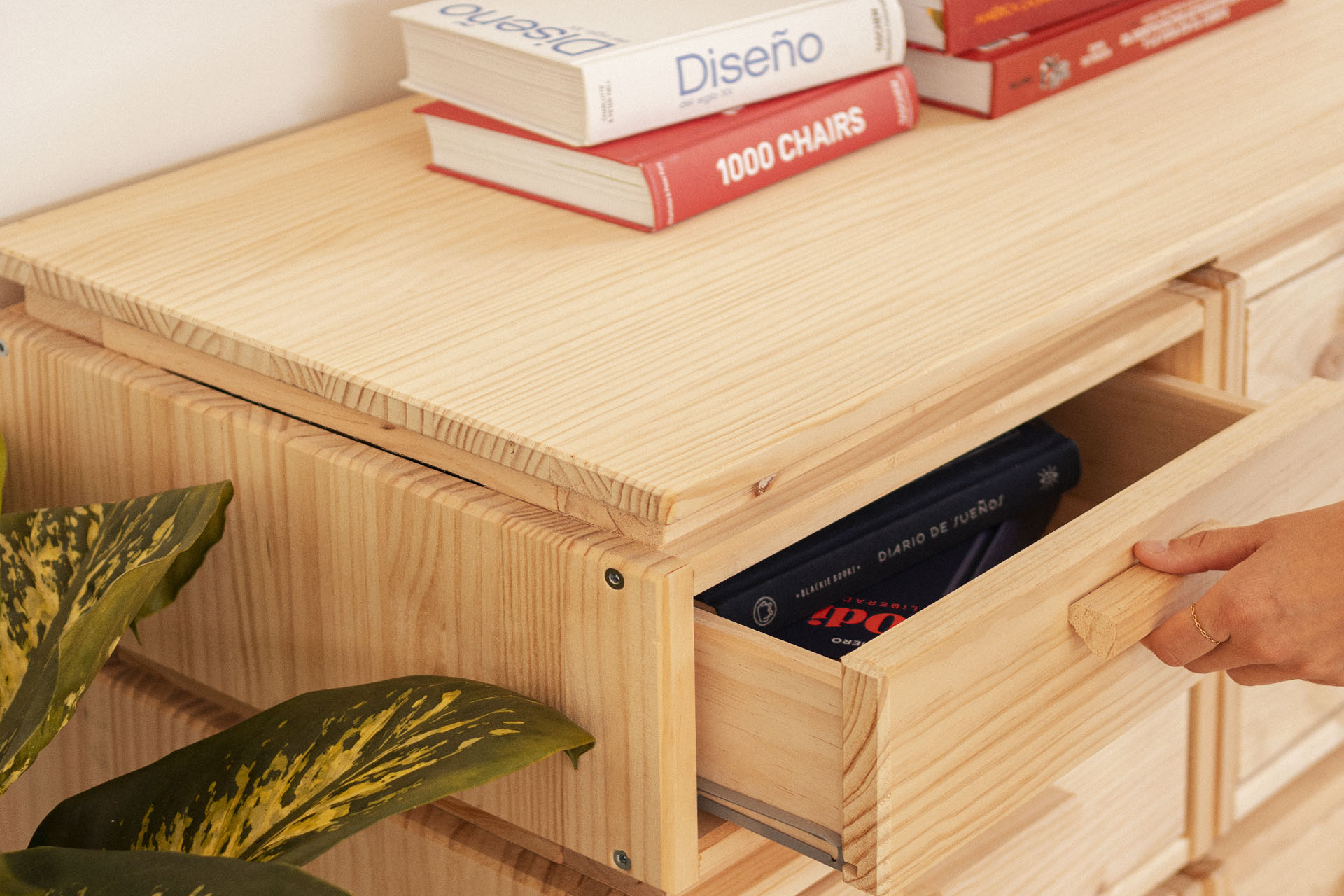 Il s’agit d’un meuble durable et recyclable certifié PEFC. Fabriqué en bois de Pin de Monterey massif écologique, provenant de forêts du Pays Basque gérées durablement.