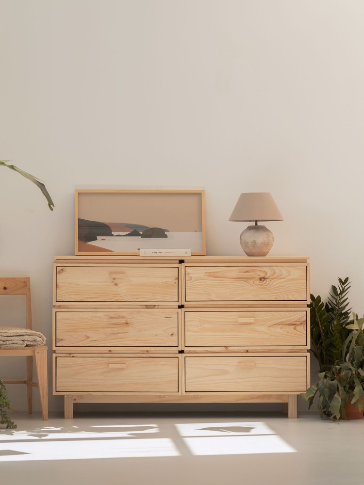 Notre série de rangements modulaires vous permet de créer des combinaisons infinies. Si vous ajoutez des pieds à votre combinaison, votre meuble sera AIKA, si vous n’en ajoutez pas, votre meuble sera LIBE. Deux styles, une même fonctionnalité. Exploitez le potentiel de notre série modulaire pour meubler votre intérieur avec style et concevez votre propre vitrine, chiffonnier, commode, meuble à tiroirs, classeur, armoire, penderie, buffet salon, table de chevet et bien d’autres choses encore.