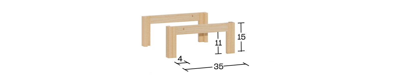 Structure de pieds en bois naturel massif pour les combinaisons AIKA avec modules tiroirs 39.