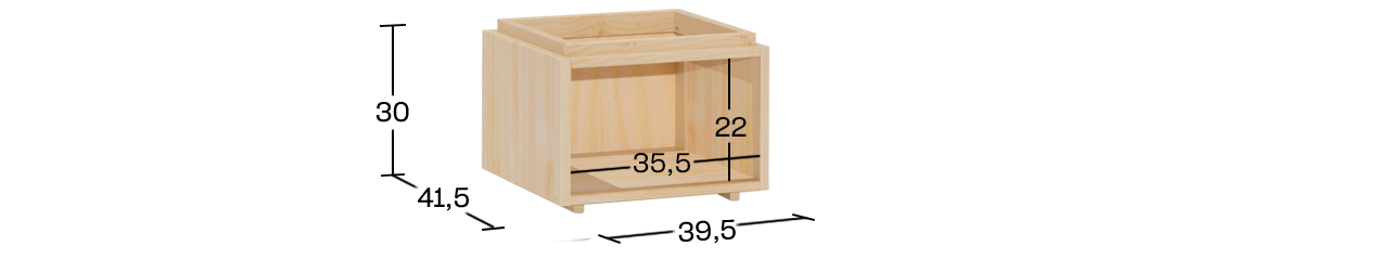 Module creux en bois de pin massif et naturel, idéal pour apporter une touche légère et fonctionnelle à vos compositions. Compatible avec nos étagères, tables d'appoint, commodes, chiffonniers, vitrines et armoires modulaires, créez votre mobilier sur mesure.