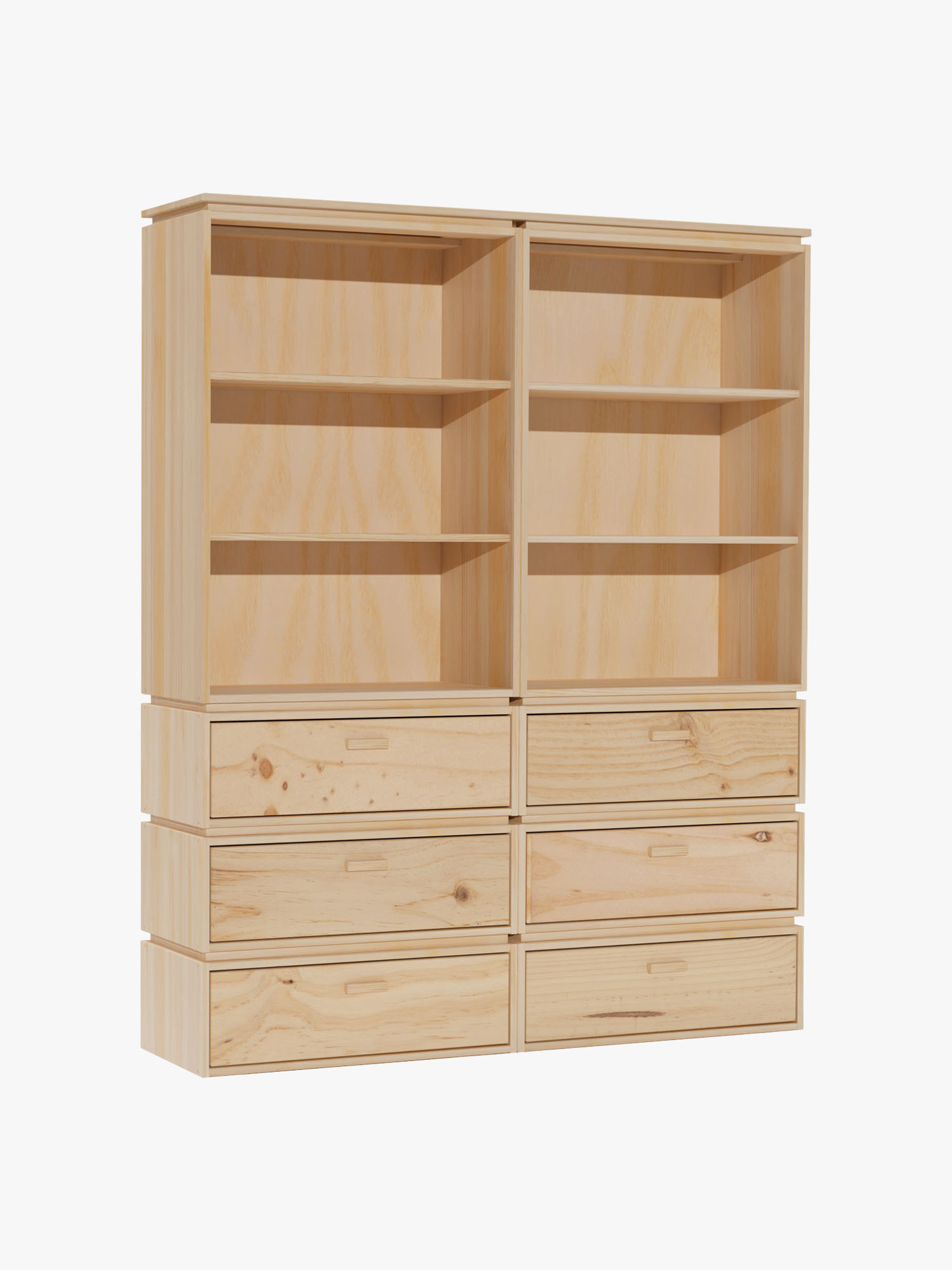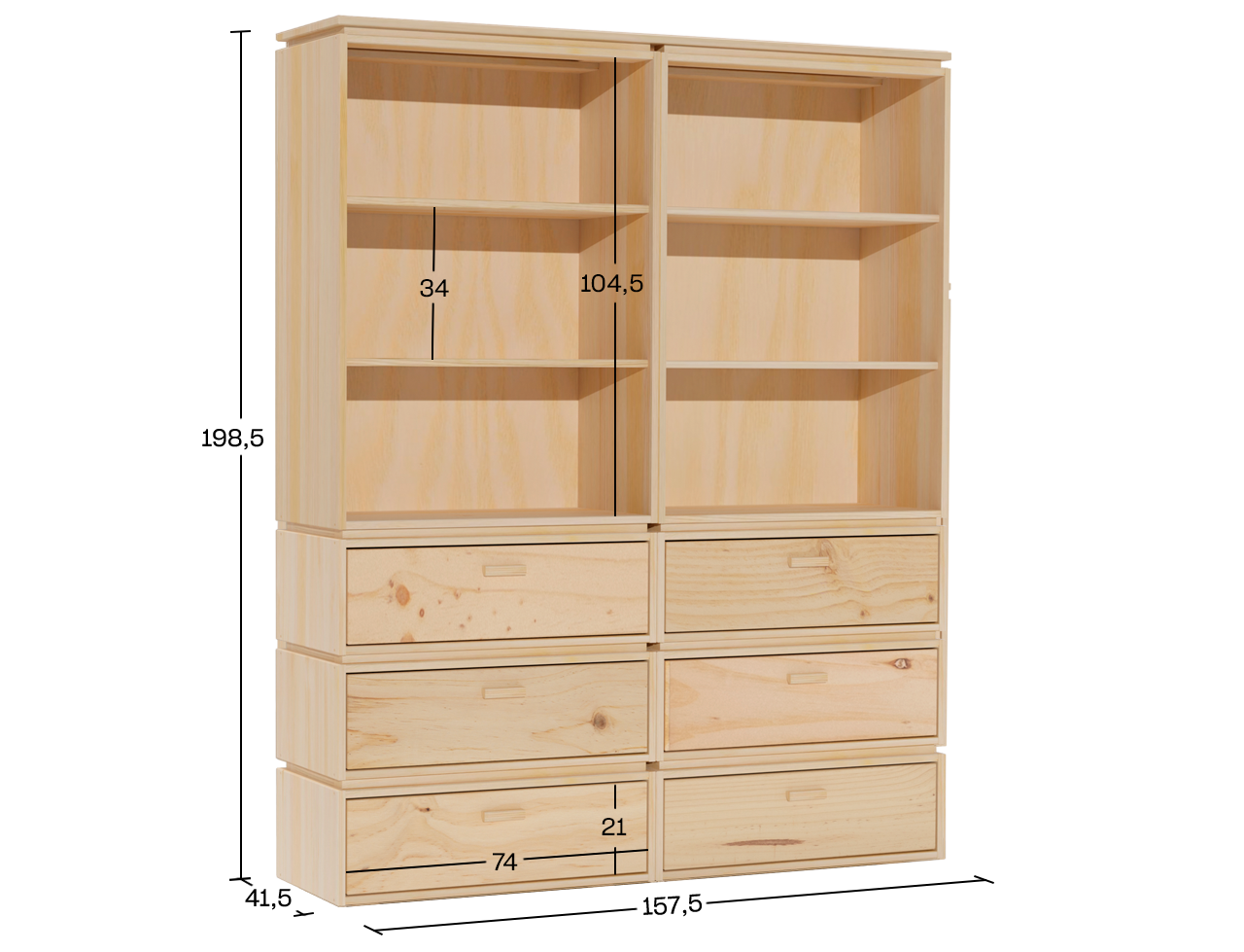 Étagère double en bois naturel avec six tiroirs spacieux pour ranger livres, objets décoratifs, vêtements, articles ménagers ou accessoires. Idéale pour le salon ou le bureau, cette étagère allie fonctionnalité et design écologique, conçue pour s'adapter à tous les espaces de votre maison. Organisez et rangez efficacement, sans sacrifier le style.