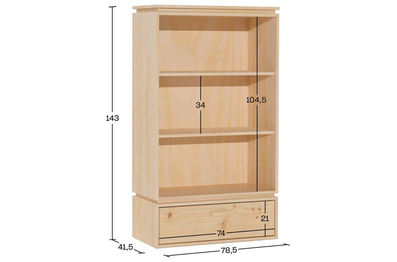 Étagère basse en bois naturel avec tiroir intégré pour livres et objets de décoration. Idéale pour le salon ou le bureau, elle allie fonctionnalité et design, conçue pour s'adapter à différents espaces. Fabriquée en bois écologique de haute qualité, elle permet une organisation et un rangement efficaces, dans un style nordique intemporel. Elle allie durabilité et harmonie.