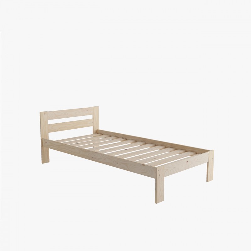 Lit simple pour matelas de 90 cm. Lit avec tête de lit en bois naturel disponible en deux longueurs : pour matelas de 190 et 200 cm. Très pratique dans les petites pièces et les chambres à coucher.