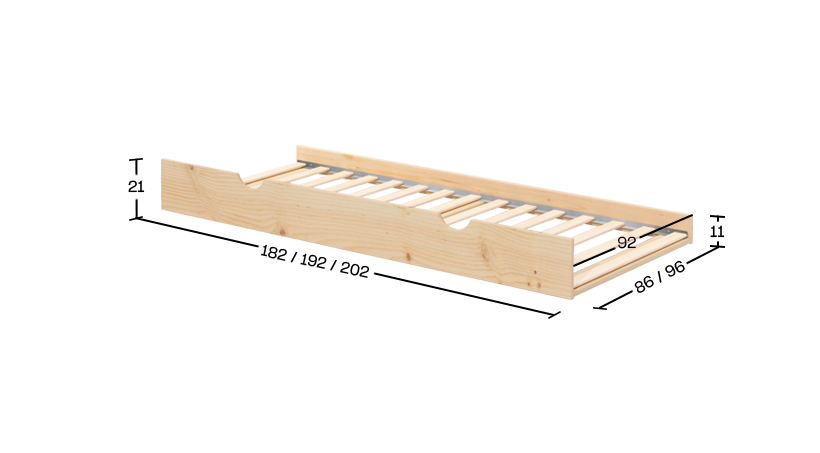 Un lit inspiré des lits traditionnels des fermes, dont le design met encore davantage en valeur notre bois naturel. Son lit gigogne est la solution idéale pour les chambres partagées ou pour accueillir des invités de temps à autre. Un lit qui rend hommage à nos racines avec style et fonctionnalité, à l'image de tout ce que nous faisons chez LUFE. Fabriqué en bois de pin naturel issu des forêts voisines.
