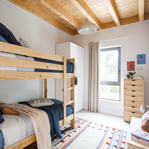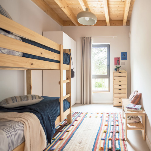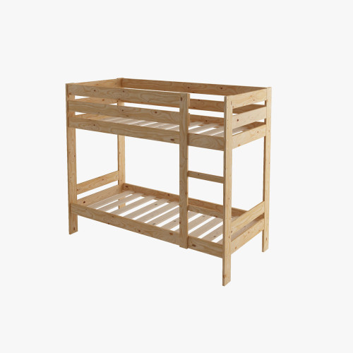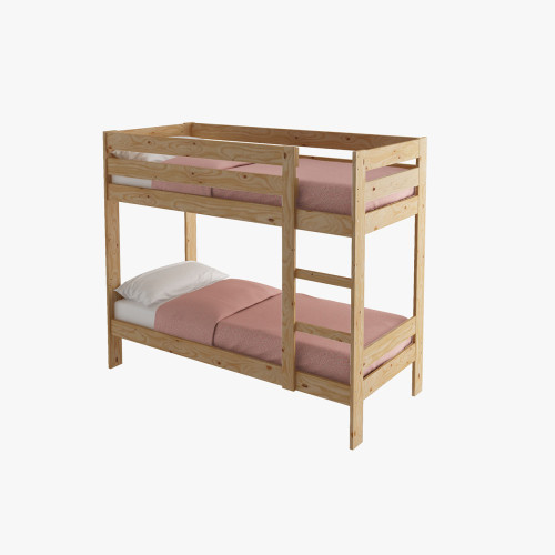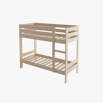 Lit superposé en bois massif naturel. Un lit superposé pour enfants et aussi pour adultes pour des matelas de 80 cm, avec une grande résistance et un beau design nordique. Avec sommier à lattes inclus dans les deux lits.