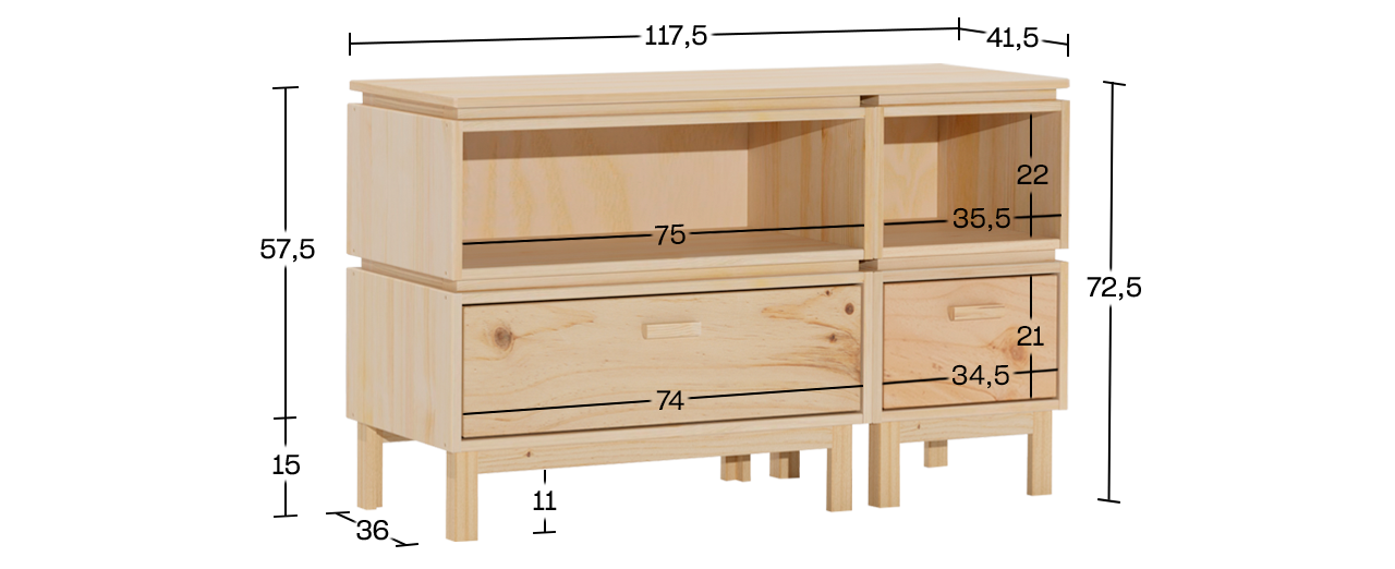 Il s’agit d’un meuble durable et recyclable certifié PEFC. Fabriqué en bois de Pin de Monterey massif écologique, provenant de forêts du Pays Basque gérées durablement.