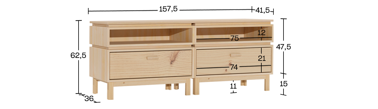 Il s’agit d’un meuble durable et recyclable certifié PEFC. Fabriqué en bois de Pin de Monterey massif écologique, provenant de forêts du Pays Basque gérées durablement.