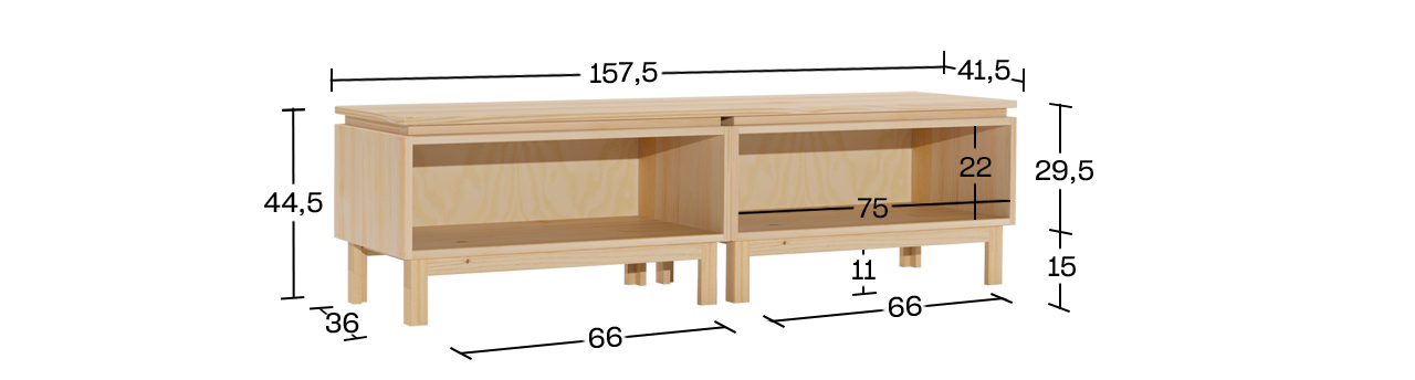 Il s’agit d’un meuble durable et recyclable certifié PEFC. Fabriqué en bois de Pin de Monterey massif écologique, provenant de forêts du Pays Basque gérées durablement.