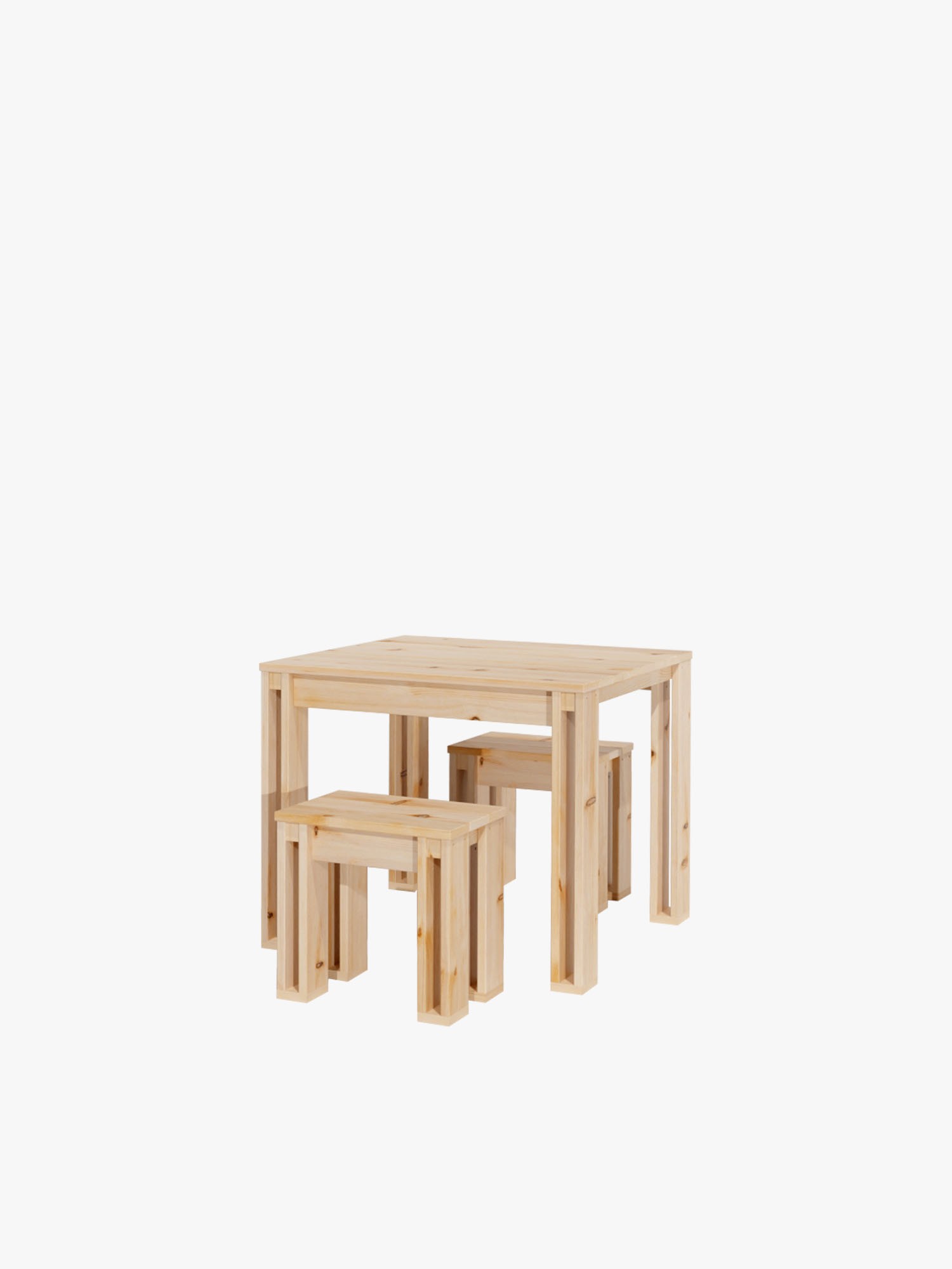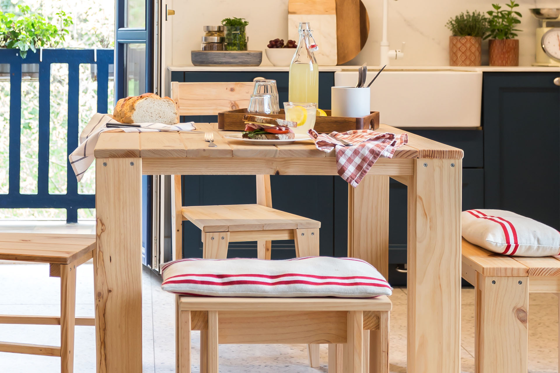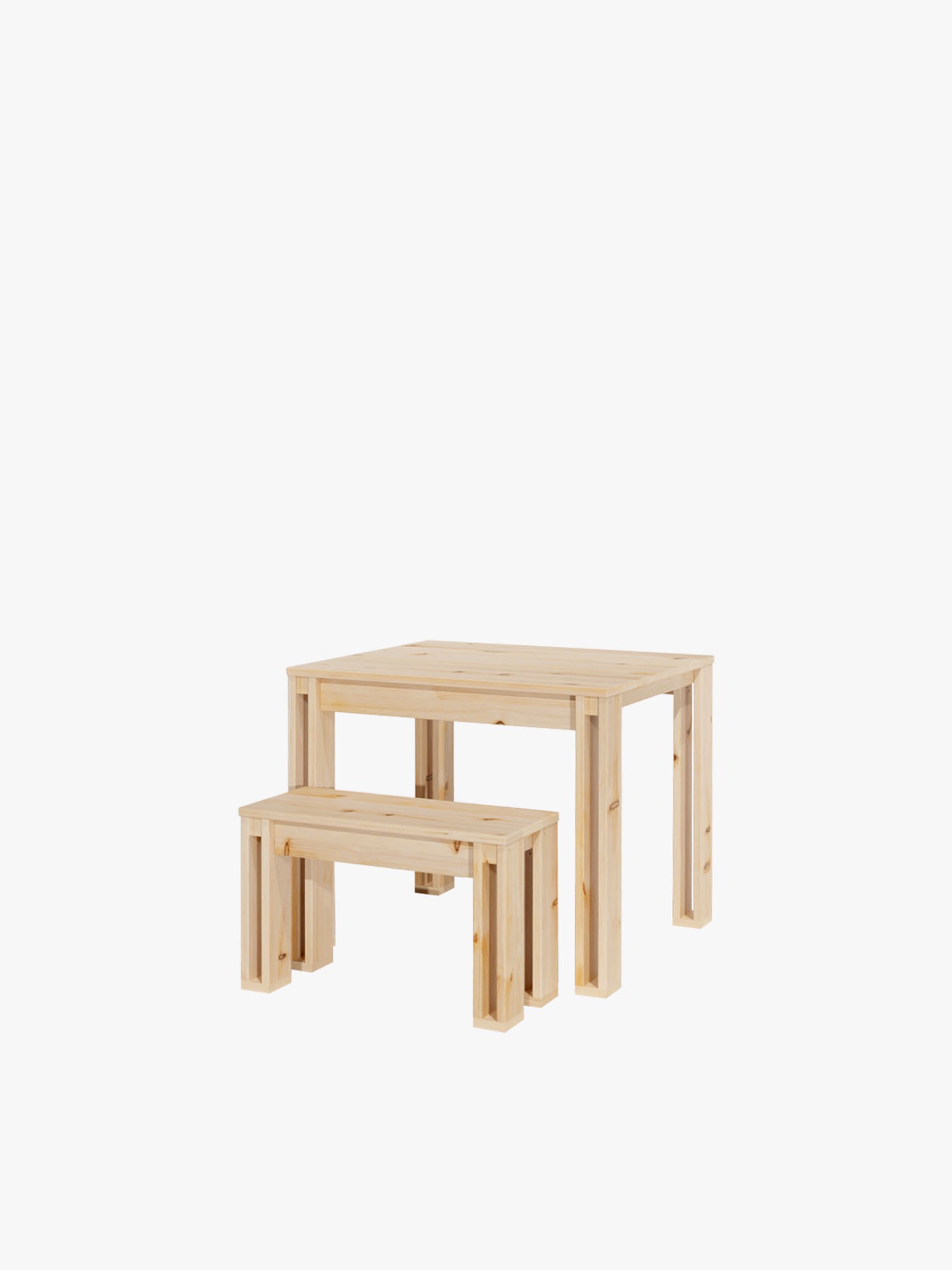 Set de table à manger 80X80 et bancs en bois 45X35 BATU | LUFE
