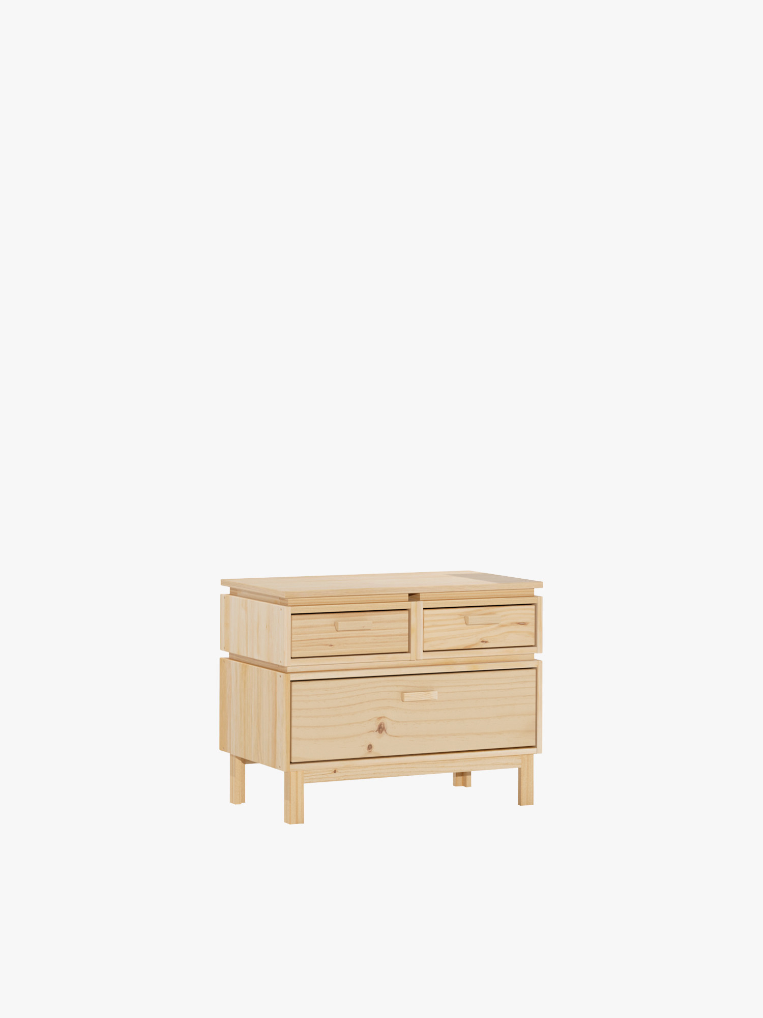 Table de chevet en bois massif avec un grand tiroir et deux petits tiroirs pratiques pour les objets que vous souhaitez garder à portée de main au moment du coucher.