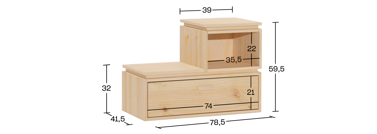 Table de chevet en pin massif et naturel, avec un design en échelle, un creux supérieure et un tiroir inférieur. Une solution originale et pratique pour ranger vos essentiels près du lit. Idéale pour les chambres d'adolescents ou doubles. Fabriquée en bois local certifié,le style chaleureux et intemporel de LUFE.