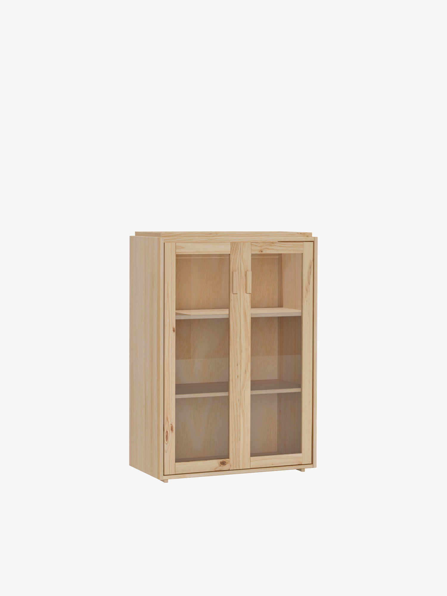 Module vitrine en bois massif avec portes en verre, compatible avec nos chiffonniers, commodes et tables de chevet des séries AIKA ou LIBE.